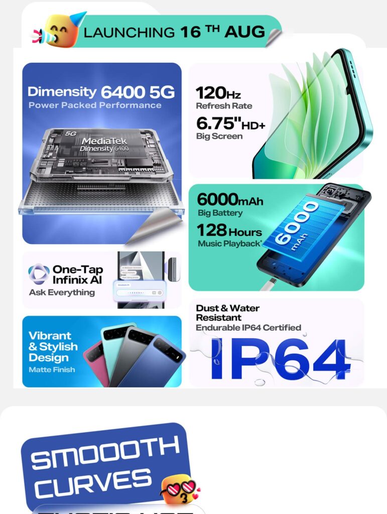✓ IP64 रेटिंग: यह स्मार्टफोन IP64 डस्ट और वाटर-रेसिस्टेंट है, यानी यह धूल और पानी के छींटों से सुरक्षित है। यह फीचर इसे रोज़मर्रा के इस्तेमाल के लिए और भी भरोसेमंद बनाता है।