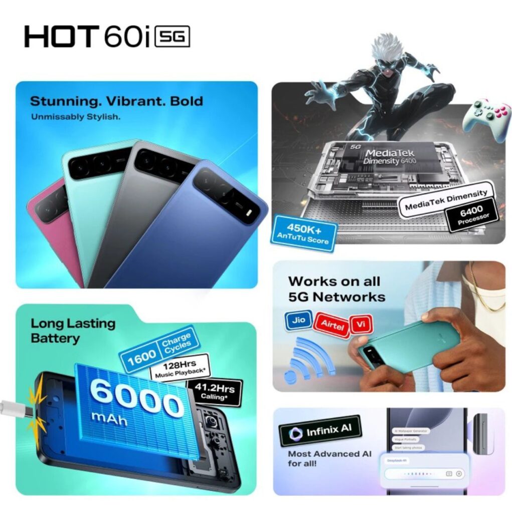 Infinix Hot 60i 5G की कीमत इसे बजट सेगमेंट में एक आकर्षक विकल्प बनाती है।