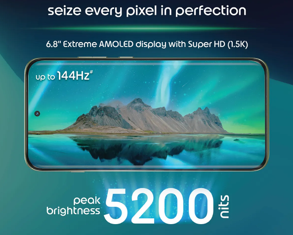 इस स्मार्टफोन में 6.8-इंच का Extreme AMOLED डिस्प्ले दिया गया है, जो 1.5K (Super HD) रेजोल्यूशन के साथ आता है।