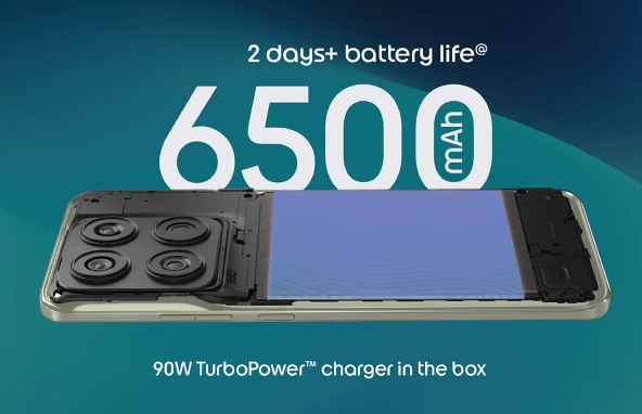 फोन की सबसे बड़ी ताकत इसकी 6500mAh बैटरी है, जो कंपनी के अनुसार 2 दिन तक का बैटरी बैकअप दे सकती है। इसके साथ ही बॉक्स में 90W TurboPower फास्ट चार्जर दिया गया है, जिससे फोन बहुत तेजी से चार्ज हो जाता है। यह फीचर उन यूज़र्स के लिए काफी उपयोगी है जो लंबे समय तक फोन का उपयोग करते हैं और बार-बार चार्जिंग से बचना चाहते हैं।