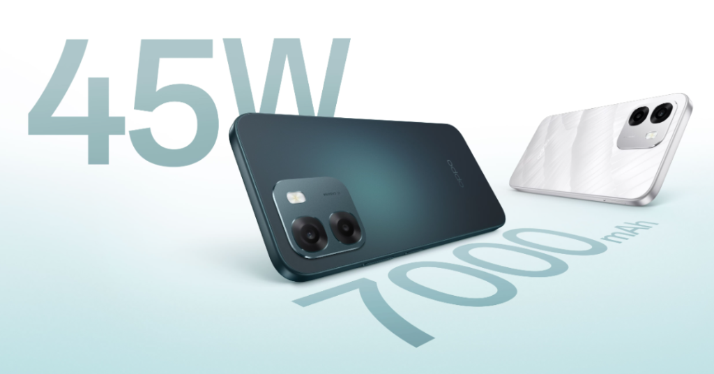 फोन में 7000mAh की बड़ी बैटरी है, जो लंबी बैटरी लाइफ देती है। इसके साथ 45W SUPERVOOC फास्ट चार्जिंग सपोर्ट भी मौजूद है, जिससे बैटरी कम समय में तेजी से चार्ज होती है।