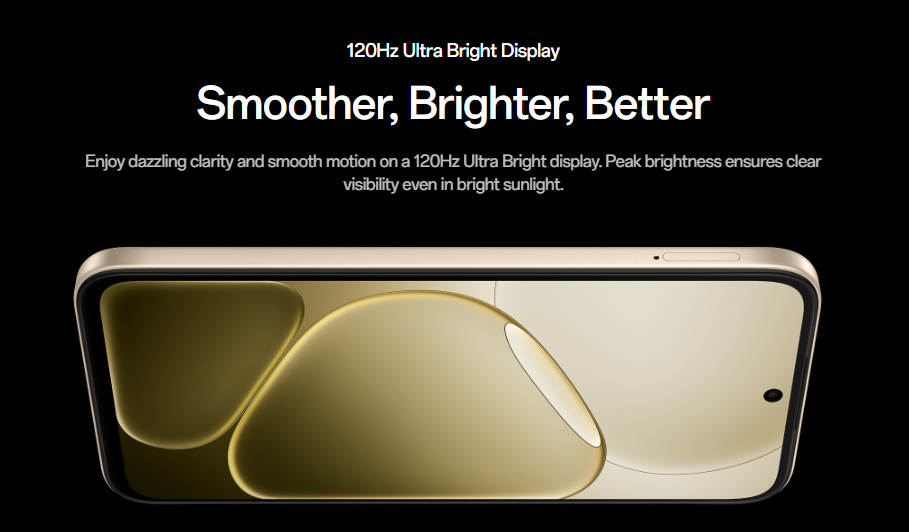 इस फोन में लगभग 6.75 इंच का LCD डिस्प्ले दिया गया है, जिसका स्क्रीन-टू-बॉडी रेशियो 90% से ज्यादा है। इसमें 120Hz रिफ्रेश रेट का सपोर्ट मिलता है, जिससे स्क्रोलिंग और गेमिंग काफी स्मूद हो जाती है। साथ ही 240Hz टच सैंपलिंग रेट यूज़र इनपुट को तेजी से रिस्पॉन्ड करता है। डिस्प्ले HD+ रिजोल्यूशन के साथ आता है और इसमें ब्राइटनेस भी अच्छी दी गई है, जिससे आउटडोर में भी स्क्रीन आसानी से देखी जा सकती है।