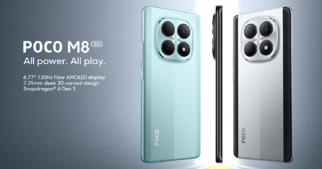 POCO ने भारतीय बाजार में अपना नया स्मार्टफोन POCO M8 5G लॉन्च कर दिया है। यह स्मार्टफोन उन यूज़र्स के लिए पेश किया गया है जो किफायती बजट में प्रीमियम डिजाइन, दमदार परफॉर्मेंस और लेटेस्ट टेक्नोलॉजी चाहते हैं। POCO M8 5G में कर्व्ड AMOLED डिस्प्ले, Snapdragon 6 Gen 3 प्रोसेसर और लंबा सॉफ्टवेयर सपोर्ट दिया गया है, जिससे यह मिड-रेंज सेगमेंट में एक मजबूत विकल्प बनकर सामने आता है।