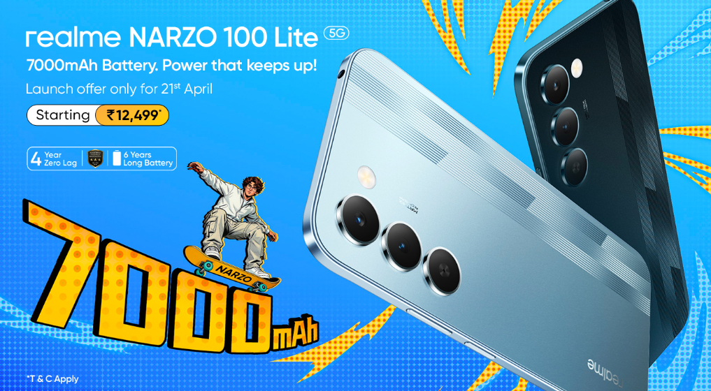 स्मार्टफोन बाजार में तहलका मचाने के लिए एक नया ‘चैंपियन’ आ गया है realme NARZO 100 Lite 5G। यह फोन केवल एक डिवाइस नहीं है, बल्कि पावर और परफॉर्मेंस का एक पावरहाउस है, जिसे खास तौर पर उन यूजर्स के लिए डिजाइन किया गया है जो बिना किसी समझौते के बेस्ट चाहते हैं। एक शानदार लॉन्च ऑफर के साथ, यह स्मार्टफोन तकनीक के प्रति उत्साही लोगों और आम यूजर्स, दोनों का ध्यान अपनी ओर खींचने के लिए तैयार है।