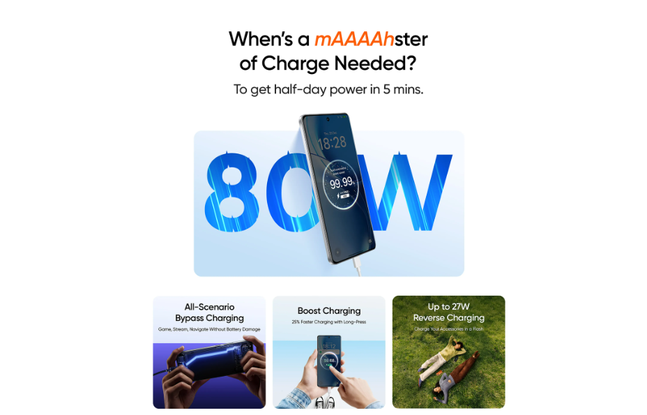 - 80W Fast Charging + 27W Reverse Charging – कम चार्ज समय और पॉवर-शेयरिंग।