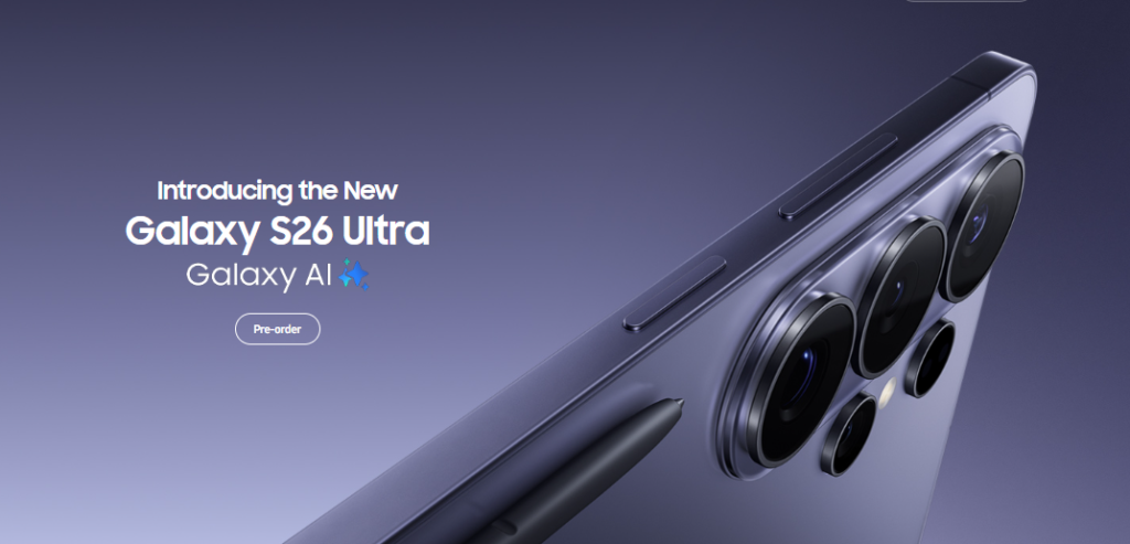 स्मार्टफोन इंडस्ट्री लगातार तेजी से बदल रही है और हर साल नई तकनीक यूज़र्स के अनुभव को बेहतर बनाती जा रही है। साल 2026 में प्रीमियम स्मार्टफोन सेगमेंट में सबसे ज्यादा चर्चा जिस डिवाइस को लेकर हो रही है, वह है Galaxy S26 सीरीज। खास तौर पर Galaxy S26 Ultra अपने दमदार कैमरा सिस्टम, हाई-परफॉर्मेंस प्रोसेसर, शानदार डिस्प्ले और एडवांस AI फीचर्स के कारण टेक लवर्स के बीच आकर्षण का केंद्र बना हुआ है। यह फोन उन यूज़र्स के लिए तैयार किया गया है जो मोबाइल में कैमरा, गेमिंग, प्रोडक्टिविटी और प्रीमियम डिजाइन सब कुछ एक साथ चाहते हैं। नीचे इस स्मार्टफोन के डिजाइन, डिस्प्ले, कैमरा, परफॉर्मेंस, बैटरी, कनेक्टिविटी और कीमत से जुड़ी पूरी जानकारी आसान भाषा में दी गई है।